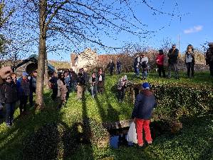 Nous suivons le ru Saint-Martin jusqu’à la rue du vieux-Château et nous allons voir les anciennes douves du vieux château du 12ème siècle. De retour dans « l’ile » nous suivons la Vieille Thève jusqu’aux jardins familiaux ; nous évoquons le milieu dans lequel nous sommes (le marais encore présent plus au sud devait arriver jusque là) et le parcours de la Thève