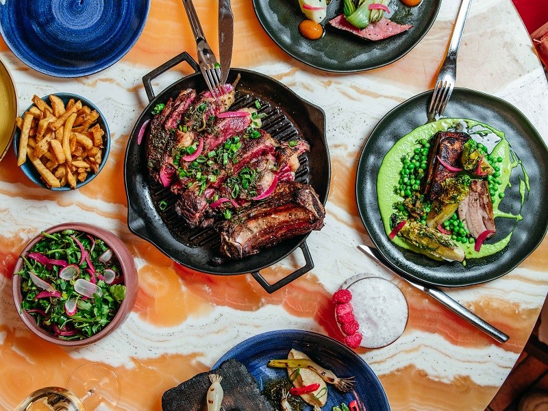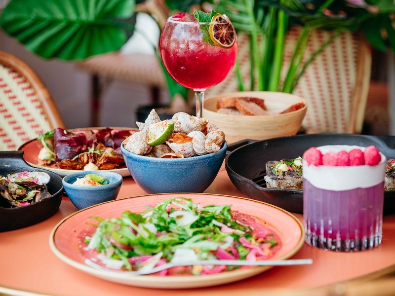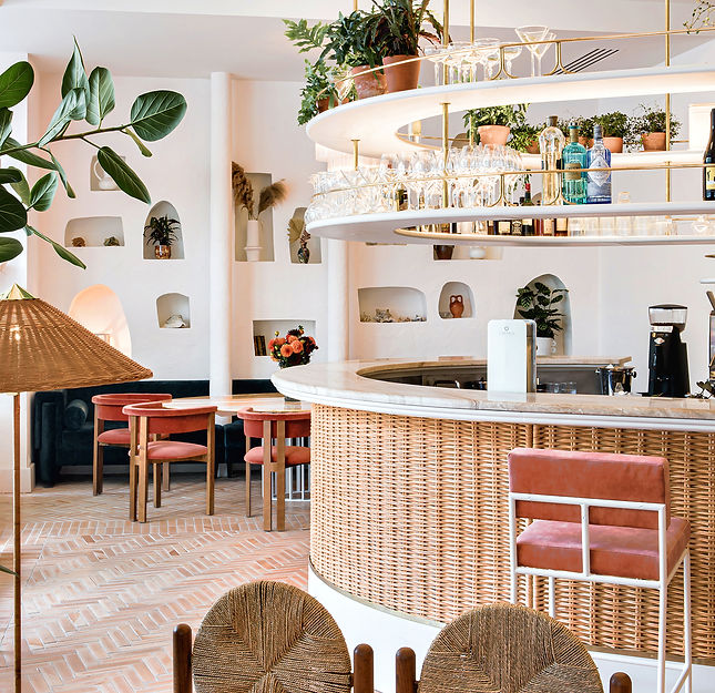 Le restaurant est organisé autour d’un magnifique bar central où l’on peut boire des cocktails avec vue sur la cuisine ouverte.