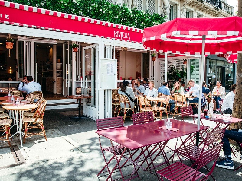 La grande terrasse ensoleillée du Riviera, avec une vue imprenable sur la belle église de St Vincent de Paul dans le 10e arrondissement, nous a permis de profiter pleinement de l’arrivée de l’été. Les amateurs de déco ne pourront passer à côté de l’ambiance contemporaine et raffinée de ce restaurant branché.