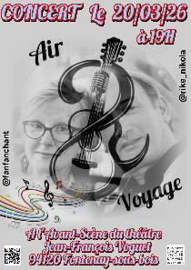 🎼Air2Voyage🎵 sera en concert à l’Avant-Scène du théâtre Jean-François Voguet (94120 Fontenay-sous-Bois).