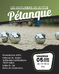 L'ASSOCIATION DES VOITURIERS DE LUTECE VOUS ACCUEILLE POUR UN TOURNOI DE PETANQUE.
