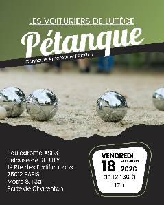 L'ASSOCIATION DES VOITURIERS DE LUTECE VOUS ACCUEILLE POUR UN TOURNOI DE PETANQUE.