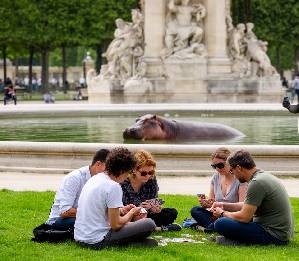 Jeux de cartes au Jardin des Tuileries et petit pique-nique