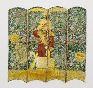 Son travail s’inspire des drapeaux vaudous haïtiens, qui servent à raconter l’histoire du pays et à honorer des esprits ancestraux.