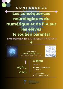 Ces technologies offrent de nouvelles opportunités pédagogiques, favorisant l’accès à l’information, la personnalisation des parcours et le développement de compétences numériques essentielles. Cependant, elles soulèvent également des enjeux importants : attention, esprit critique, dépendance aux outils ou encore éthique de l’usage de l’IA. Cette conférence propose d’explorer les impacts du numérique et de l’intelligence artificielle sur les élèves, entre potentialités éducatives et défis pour l’école. L’objectif est de mieux comprendre ces transformations afin d’accompagner les jeunes vers un usage éclairé et responsable des technologies.