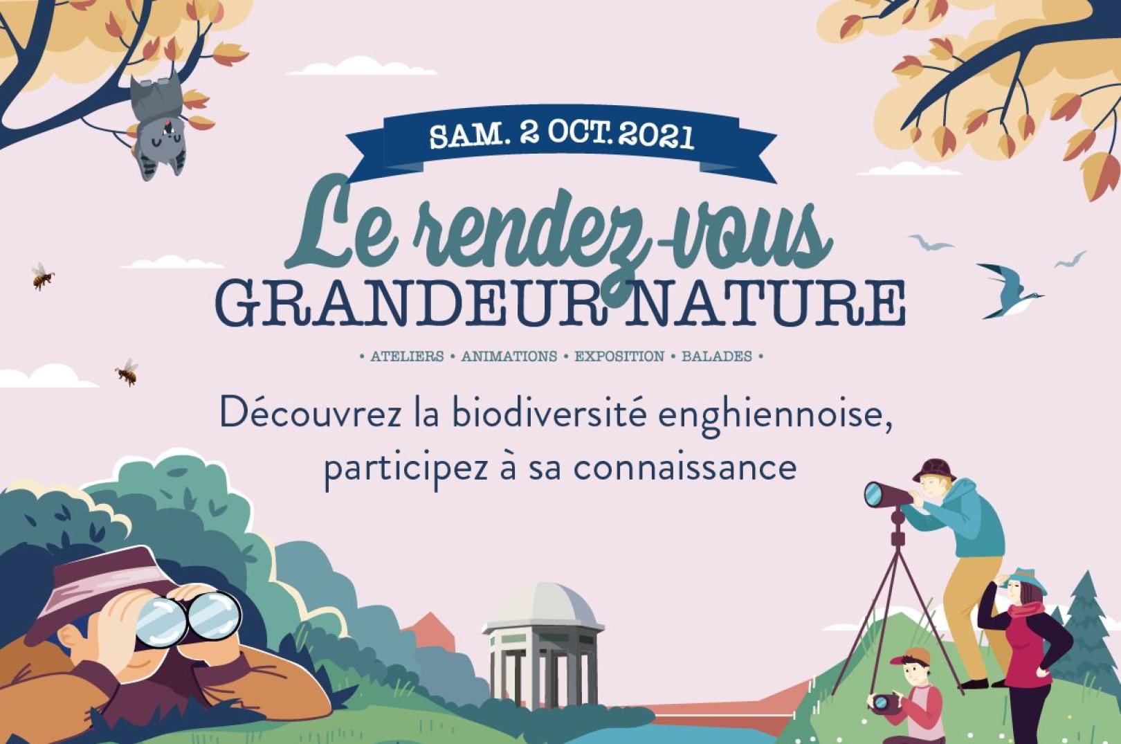"Samedi 2 octobre, venez découvrir la biodiversité enghiennoise. Des animations, des ateliers, des expositions et des balades vous seront proposés pour explorer la faune et la flore en ville, aux côtés de naturalistes. Cette journée à partager en famille, entre amis, entre voisins, est organisée en partenariat avec l’Agence régionale de la biodiversité en Île-de-France. L’occasion de s’initier à des outils pour explorer le vivant qui vous entoure et enrichir à votre tour l’inventaire communal !"