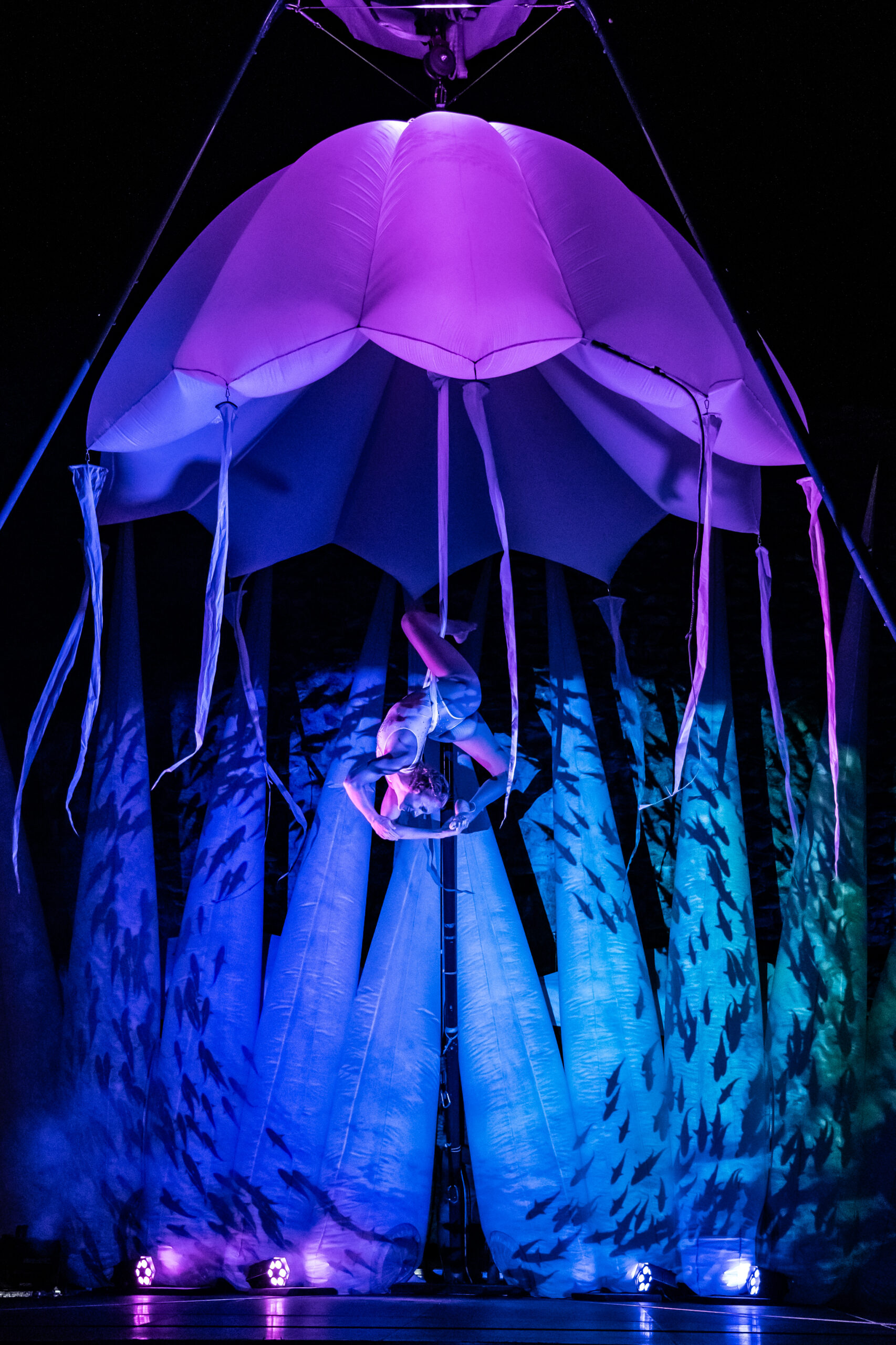 La compagnie Les Farfadais, troupe internationale passée par Broadway, signe cette création originale où s’entremêlent arts visuels, performances aériennes et lumière. Une dizaine d’artistes évolueront dans les airs, portés par des jeux de lumière et des projections vidéo qui feront vibrer la nature environnante. Petits et grands seront transportés dans un univers immersif, à la frontière du rêve et du réel.