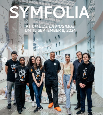 La construction de Symfolia a mobilisé près de 10 000 jeunes participants d’Île-de-France (écoliers ou membres de l’association IBKM). Elle leur a permis de comprendre mais aussi de s’immerger dans le processus artistique et créatif de l’artiste. En plus du collage, ils ont également contribué à la création de compositions sonores, diffusées à travers des haut-parleurs intégrés à l’arbre.